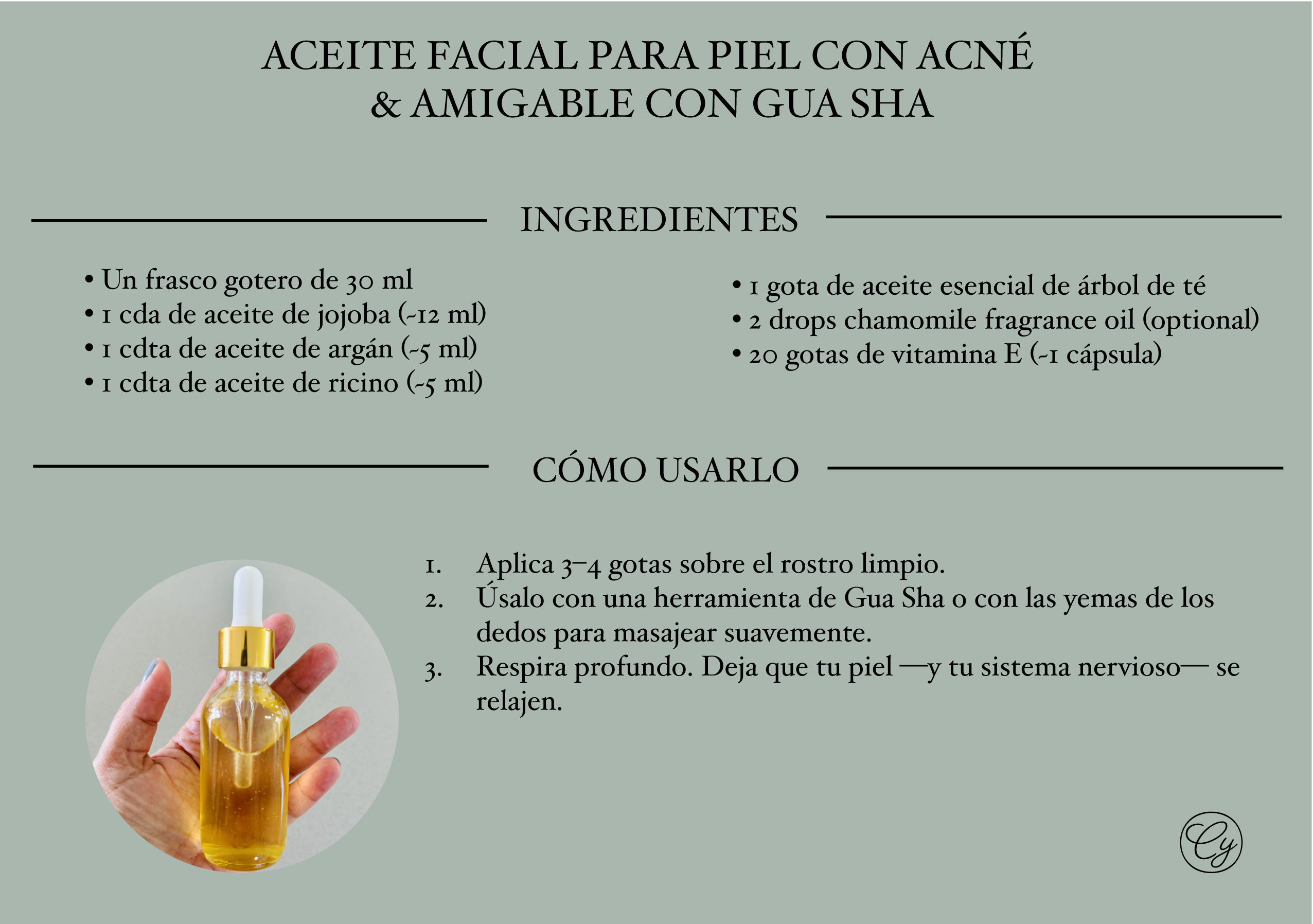 🌿 Aceite Facial para Piel con Acné & Amigable con Gua Sha